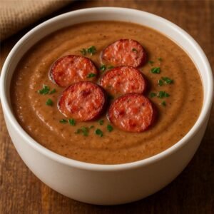 Depois, é só adicionar essa mistura ao feijão, mexendo bem para encorpar em todo o caldo, e deixar ferver por um minuto. Se estiver sem amido de milho em casa, faça o mesmo processo com farinha de trigo e o resultado será bastante semelhante.