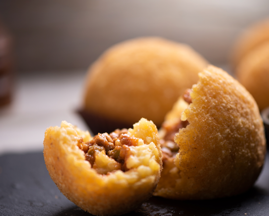 Prepare arancini com filé mignon ao molho cremoso de dar água na boca. Uma criação culinária refinada, reconfortante e cheia de personalidade, com a textura contrastante do arroz empanado e a suculência da carne nobre — perfeita para celebrações memoráveis.