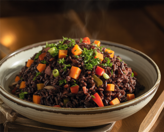Prepare um Arroz Preto à Brasileira de dar água na boca. Uma criação culinária nutritiva, reconfortante e cheia de personalidade, com a textura marcante dos grãos e o sabor envolvente dos temperos — perfeita para refeições especiais e celebrações memoráveis.