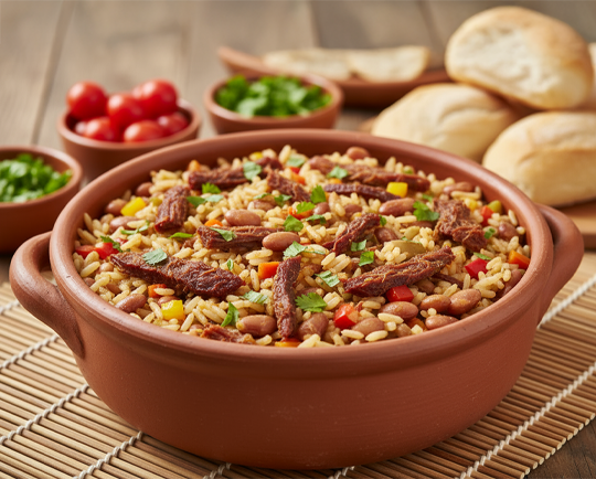 Prepare um Baião de Dois com Feijão Bolinha de dar água na boca. Uma criação culinária brasileira, reconfortante e cheia de personalidade, com a cremosidade do arroz, o sabor marcante do feijão e o toque especial dos temperos — perfeita para compartilhar e celebrar momentos memoráveis.