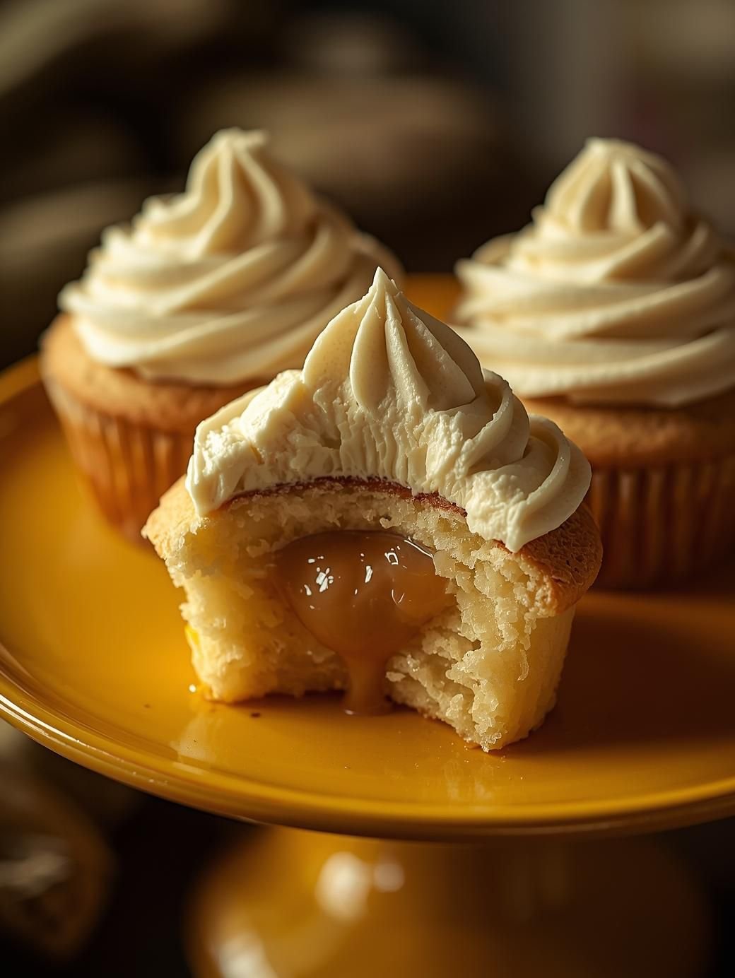 Delicie-se com este irresistível Cupcake de Baunilha com Recheio de Doce de Leite, feito com a Mistura para Bolo Caldo Bom. Uma combinação perfeita entre massa fofinha, recheio cremoso e cobertura suave — ideal para adoçar qualquer momento do dia!