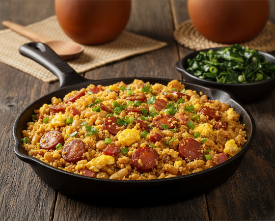 Prepare um Feijão Tropeiro com Feijão Jalo de dar água na boca. Uma criação culinária robusta, reconfortante e cheia de personalidade, com a textura marcante do feijão, a crocância da farinha e o sabor irresistível dos temperos — perfeita para celebrações memoráveis em boa companhia.