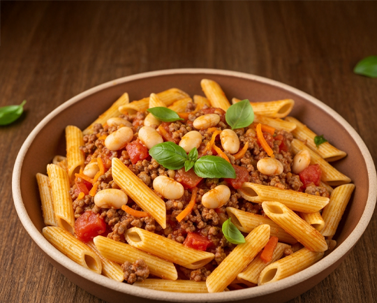 Prepare um Molho Bolonhesa com Feijão Bolinha e Macarrão de dar água na boca. Uma criação culinária rica em sabor, reconfortante e cheia de personalidade, com a suculência do molho, a maciez do feijão e a textura perfeita da massa — ideal para refeições especiais e celebrações memoráveis.
