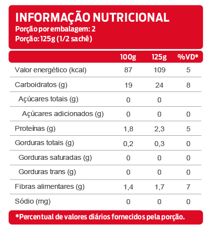 Cozimento Inovador: Nossa Canjica Branca é cozida e esterilizada em altas temperaturas dentro de embalagens seladas. Este método preserva o frescor, cor, textura, e mantém as propriedades nutricionais intactas, garantindo que você desfrute de todos os benefícios do cozimento a vapor.