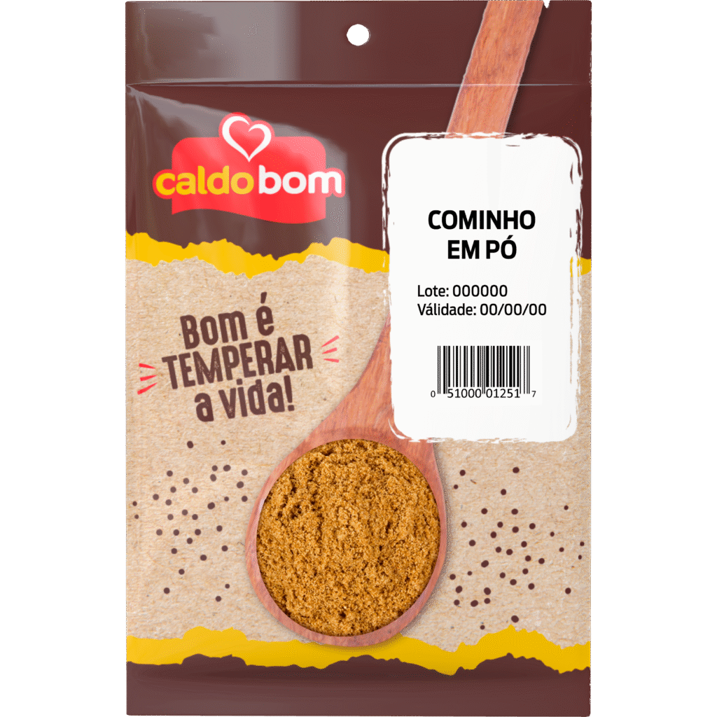 O Cominho em Pó Caldo Bom é produzido a partir de grãos selecionados, oferecendo praticidade e sabor característico.