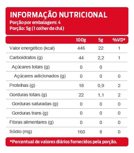 *As declarações de ingredientes, dados nutricionais e alergênicos podem mudar. Consulte sempre a embalagem real para obter as informações mais completas e precisas