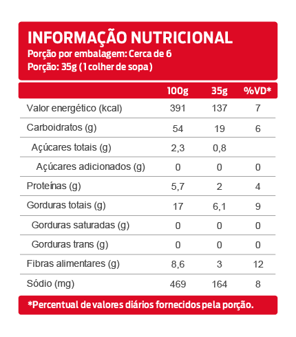 *As declarações de ingredientes, dados nutricionais e alergênicos podem mudar. Consulte sempre a embalagem real para obter as informações mais completas e precisas.