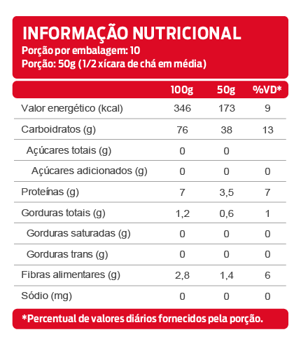 *As declarações de ingredientes, dados nutricionais e alergênicos podem mudar. Consulte sempre a embalagem real para obter as informações mais completas e precisas.