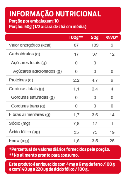 *As declarações de ingredientes, dados nutricionais e alergênicos podem mudar. Consulte sempre a embalagem real para obter as informações mais completas e precisas.
