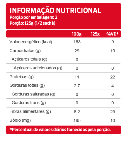 *As declarações de ingredientes, dados nutricionais e alergênicos podem mudar. Consulte sempre a embalagem real para obter as informações mais completas e precisas.