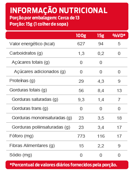 *As declarações de ingredientes, dados nutricionais e alergênicos podem mudar. Consulte sempre a embalagem real para obter as informações mais completas e precisas.