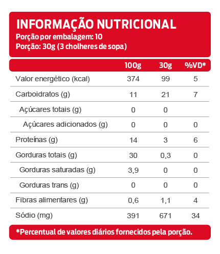 *As declarações de ingredientes, dados nutricionais e alergênicos podem mudar. Consulte sempre a embalagem real para obter as informações mais completas e precisas.