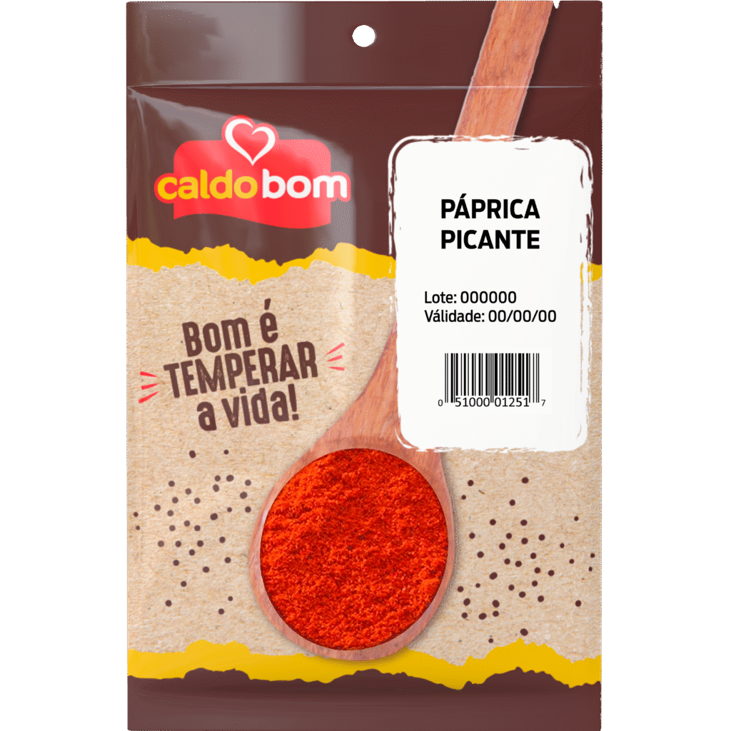 A Páprica Picante Caldo Bom é feita a partir de pimentões selecionados, trazendo sabor intenso e toque ardente.