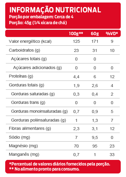 Um dos alimentos mais completos que existe devido a seus valores nutricionais, a Quinoa em Grãos Caldo Bom é 100% integral sendo certificada pela Whole Grains Council. Rica em fibras, proteínas e minerais, pode fazer parte de inúmeras receitas sendo ideal para uma vida mais saudável