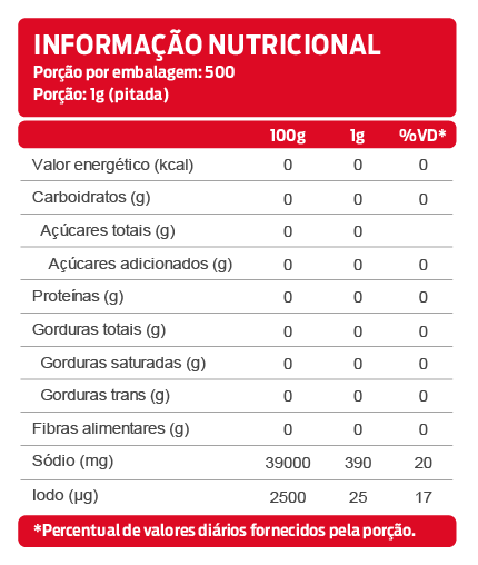 *As declarações de ingredientes, dados nutricionais e alergênicos podem mudar. Consulte sempre a embalagem real para obter as informações mais completas e precisas.