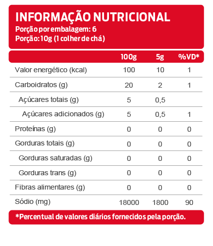 *As declarações de ingredientes, dados nutricionais e alergênicos podem mudar. Consulte sempre a embalagem real para obter as informações mais completas e precisas.
